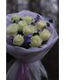 букет собран из 9 белых роз с нежным эвкалиптом, упакован в стильную упаковку.