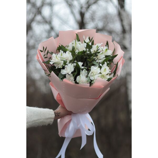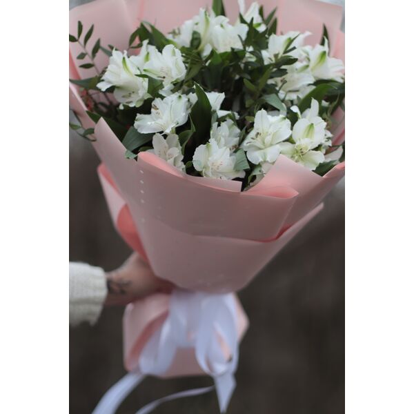 Букет собран из 5 веток альстромерии и зелени. Цвет можно изменить по вашему пожеланию.
