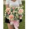 Букет собран из 11 кустовых роз двух видов, гипсофилы , альстромерии и эвкалипта.