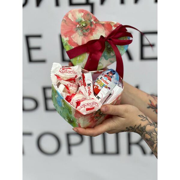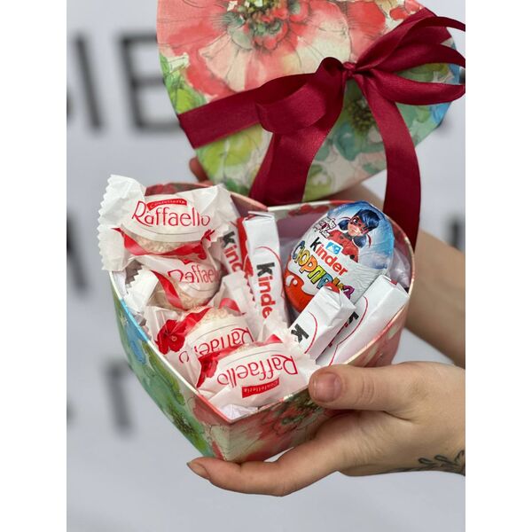 в наборе 1 киндер сюрприз, 4 рафаэлло, 4 шоколадки киндер.