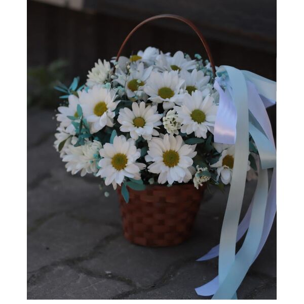 Композиция собрана из 5 веток хризантемы,  зелени и гипсофилы)